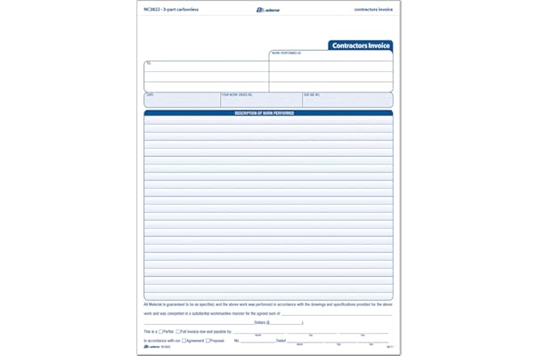Adams Contractor Invoice Forms 8 5 X 11 44 Inch 3 Part Carbonless 100 Pack White Canary And Pink Nc3822 Amazon Ca Office Products